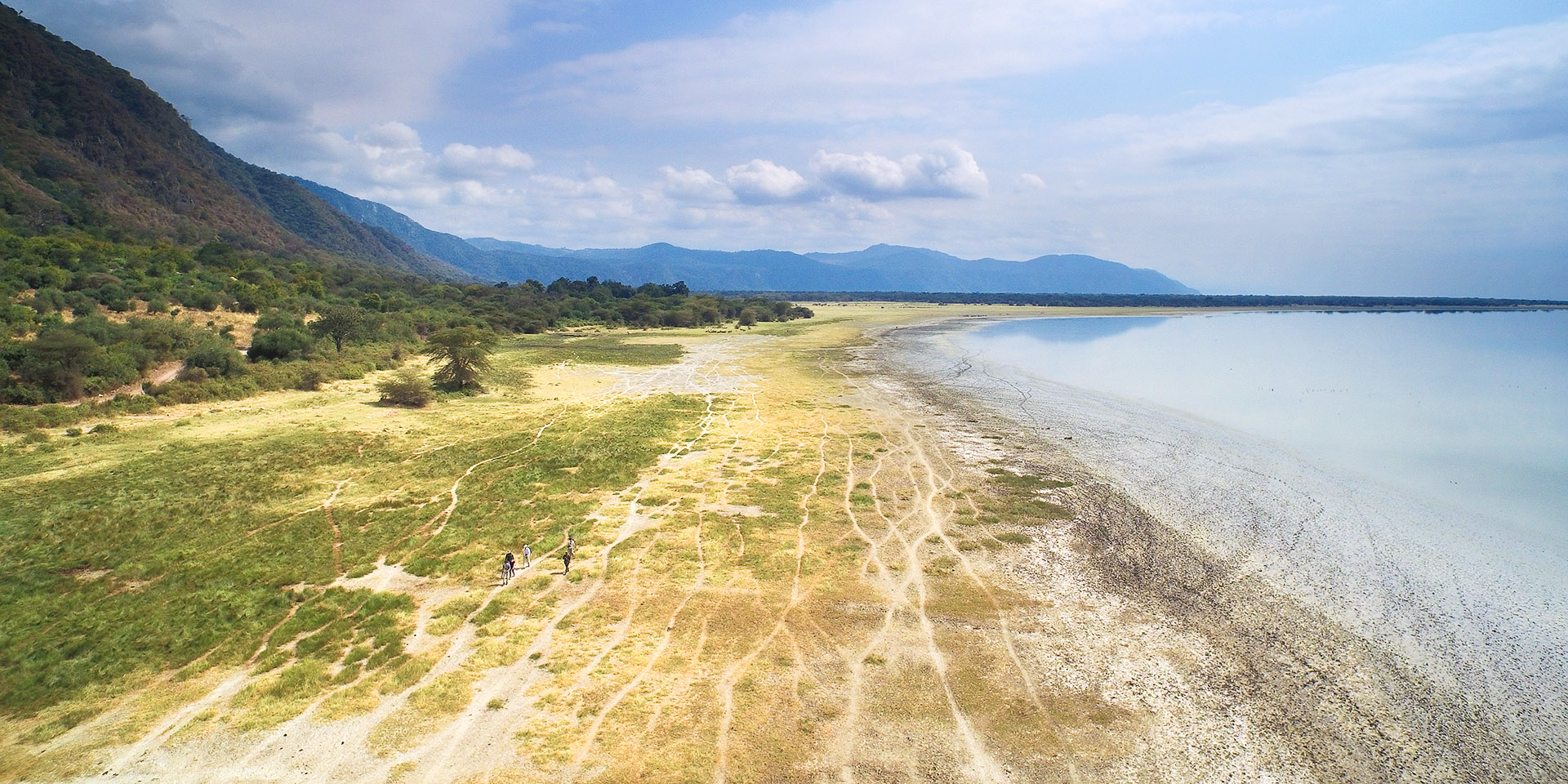 Further south there are substantial tracts of dry acacia forest, flanked by broad open grasslands which lead out to the mudflats along the shore of the lake.