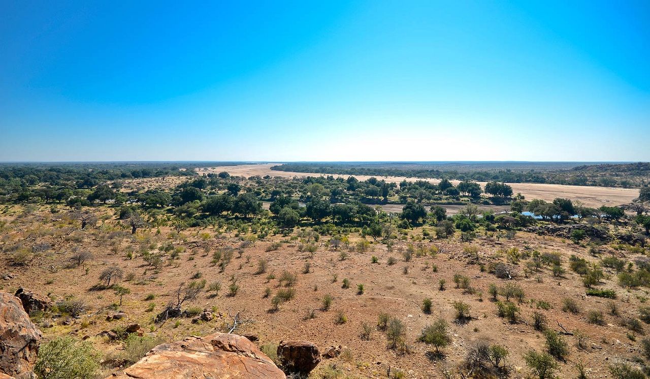 It’s a very beautiful area of hidden valleys and rocky hills, with magnificent views north over the sand river to the wild landscapes of Botswana and Zimbabwe beyond.