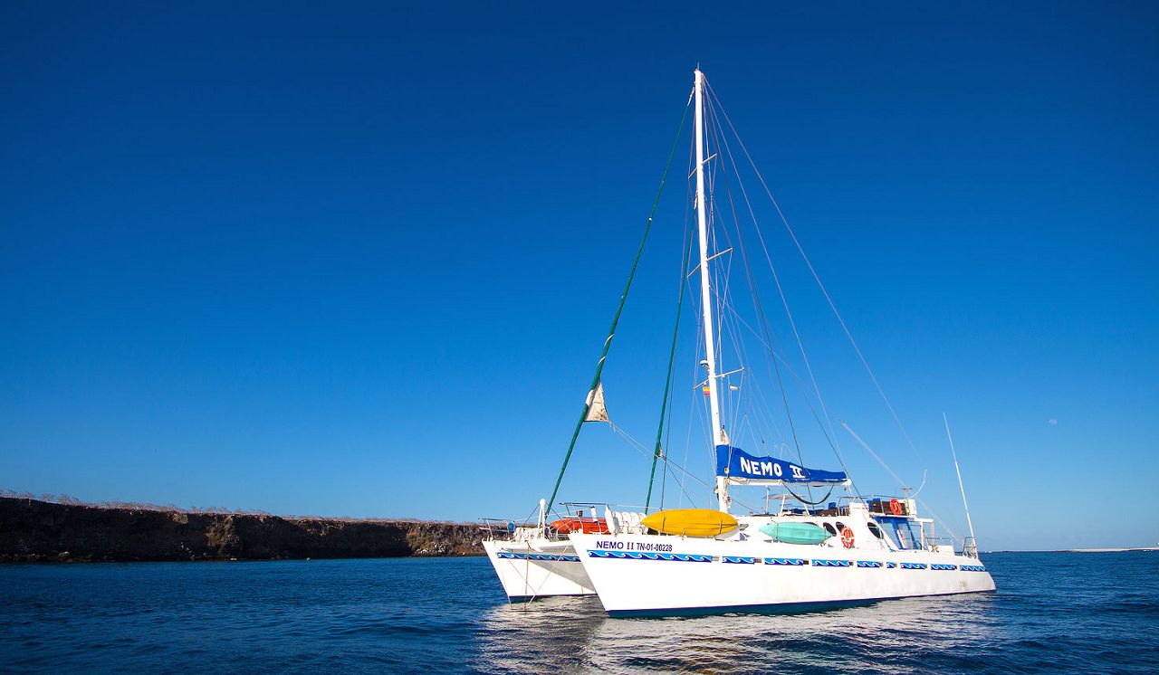 MV Nemo Two is a relatively small catamaran, which offers two different 7 night explorations of the islands of the Galápagos.